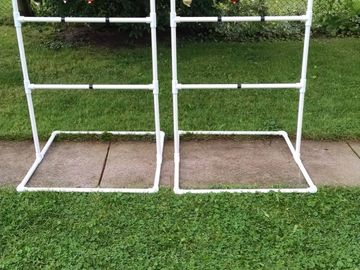 Ladder Golf is an outdoor classic. Study PVC frame with two sets of bolas to throw. Bolas made from golf balls.