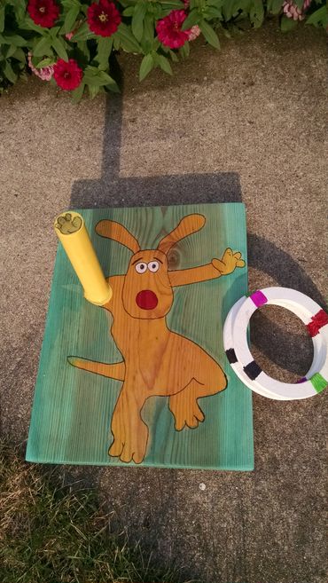 This is a great accessory to any corn hole game. Use the pegs on the side to keep score. Color options vary.